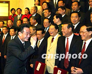 全國(guó)人大常委會(huì)委員長(zhǎng)吳邦國(guó),十九日在北京與出席十屆全國(guó)人大常委會(huì)一次會(huì)議的常委們合影留念。作者:滿會(huì)喬