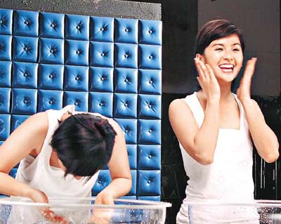 為公平起見,廣告商專誠為“阿Sa”蔡卓妍及“阿嬌”鐘欣桐拍攝了兩套拉票宣傳片,更安排二人親自進(jìn)行一連串拉票活動,實(shí)在非常有噱頭。而拍攝意念分為飲水篇及洗面篇,“阿Sa”及“阿嬌”對這次良性競爭都不敢怠慢,拍攝期間兩小妮子應(yīng)要求不斷飲水,給嗆得透不過氣來;拍攝洗面篇時(shí),“阿嬌”更由頭濕到腳,因眼睛不停入水,差點(diǎn)連隱形眼鏡都弄掉呢!