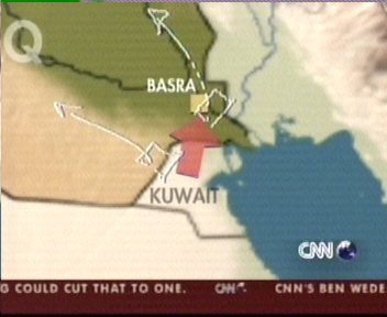 第3師出發(fā)后不久就與伊軍交上了火,據(jù)前衛(wèi)部隊(duì)發(fā)回的無(wú)線電,他們是與三輛伊軍裝甲運(yùn)兵車遭遇的,經(jīng)過(guò)短短幾分鐘的混戰(zhàn),他們?nèi)珰灹诉@股伊軍。第3步兵師推進(jìn)的速度異常之快,從夜里到天亮短短數(shù)小時(shí),他們就已經(jīng)深入伊境內(nèi)150公里,平均以每小時(shí)30英里的速度推進(jìn)。第5步兵師一名指揮官向記者透露說(shuō),他們師和兄弟部隊(duì)的任務(wù)就是在最短時(shí)間內(nèi)奪取兩河流域的戰(zhàn)略要地,隨后對(duì)巴格達(dá)實(shí)施合圍。