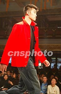 2003朱欽祺/諾帝卡秋季時(shí)裝發(fā)布會(huì)二十四日在北京舉行,展示了著名設(shè)計(jì)師朱欽祺的美國風(fēng)情設(shè)計(jì)創(chuàng)意作品。作者:毛建軍
