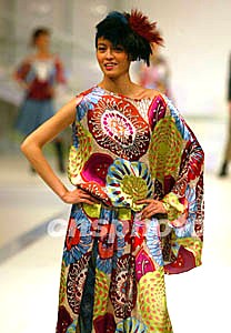 香港時裝精選《今夜星光燦爛》二十四日晚在北京中國大飯店舉行,張路路等十一位香港著名設計師的作品集體亮相,為二零零三年中國國際時裝周首日表演增添絢麗色彩。香港著名演藝明星梁詠琪參加表演為時裝周助興。作者:毛建軍