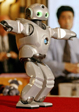 27日,日本SONY公司在東京展示了新研制的“SDR-4X II”型機(jī)器人,這種型號(hào)的機(jī)器人會(huì)跳舞,且能夠與人通話、通過(guò)傳感器越過(guò)障礙物行走!癝DR-4X II”型機(jī)器人將在4月3日的橫濱2003機(jī)器人展上亮相。