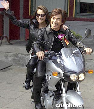 這部影片不愧為動(dòng)作片,幾位明星整裝待發(fā),楊紫瓊、任賢齊以一身黑色皮衣褲出場(chǎng),一前一后颯爽地坐在銀色摩托車(chē)上,以片中的動(dòng)作造型展示給記者。雖然兩人首次做搭檔,造型獨(dú)到,創(chuàng)意新奇,導(dǎo)演馬楚成也認(rèn)為兩人的組合是天造地設(shè),但從外型、氣質(zhì)來(lái)看,還是受到記者們的質(zhì)疑,難道這部影片也要表現(xiàn)“姐弟戀”?楊紫瓊風(fēng)度極佳地回應(yīng)道:“你們是認(rèn)為任賢齊不夠男人,還是我老了?”一句話(huà)惹得眾人哄堂大笑,一向好搞笑耍寶的小齊更以“正襟危坐”之狀顯“威風(fēng)”。