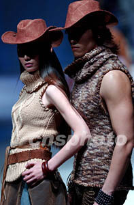 二十八日,“威鵬”2003/2004秋冬中國(guó)牛仔服裝流行趨勢(shì)發(fā)布會(huì)在北京舉行,模特展示的服裝充滿(mǎn)了經(jīng)典與現(xiàn)代的融合,令牛仔服裝的面貌為之一新。作者:盛佳鵬
