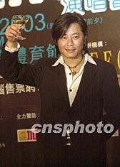 歌星王杰3月28日在香港出席“Neway一夜情歌王杰演唱會”記者會。是次演唱會將以“一夜情歌”作主題會歌迷,以獨(dú)特風(fēng)格,為歌迷帶來驚喜,圖為王杰為預(yù)祝個唱成功舉杯。鄧慶樂 攝