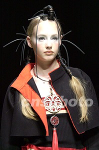 日本著名時(shí)裝設(shè)計(jì)師HIROKO KOSHINO四月三日晚在二00三年東京秋冬時(shí)裝展上發(fā)表了她的最新作品,希望通過現(xiàn)代手法來表現(xiàn)日本傳統(tǒng)服飾的美感。作者:陶光雄