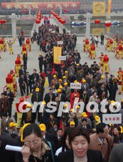 中新社鄭州四月五日電(胡珂張坤)四月五日上午,二00三中國(guó)新鄭“炎黃文化旅游節(jié)”拜祖大典在新鄭市始祖山軒轅廟前隆重舉行。來(lái)自日本、韓國(guó)、馬來(lái)西亞、美國(guó)、香港、臺(tái)灣等十多個(gè)國(guó)家和地區(qū)的華人華僑在這里焚香跪拜,尋根祭祖。