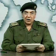 中新網(wǎng)4月8日電 伊拉克的電視節(jié)目經(jīng)常出現(xiàn)伊拉克的新聞部長(zhǎng)薩哈夫。薩哈夫通常站在攝象機(jī)前,面露微笑,頭戴貝雷帽,宣布伊拉克軍隊(duì)頑強(qiáng)抵抗或勝利的消息。