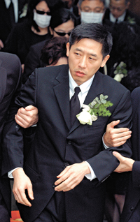 “哥哥”的告別儀式十分短暫,約十分鐘左右便完成,所有親友均按習(xí)俗以碌柚葉水洗手,各領(lǐng)一封英雄利是及“哥哥”的紀(jì)念卡。只見(jiàn)“唐唐”悲慟得全身軟弱無(wú)力,不能走路,要由兩個(gè)人攙扶,不停望著“哥哥”的照片若有所思并念念有詞。圍觀的歌迷更向他說(shuō):“‘唐唐’,振作些!”