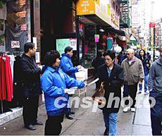 紐約僑界于當?shù)貢r間十二日在華埠派發(fā)預(yù)防非典型肺炎的中文說明。目前紐約被懷疑可能是非典型肺炎的病例有八起,華埠沒有發(fā)現(xiàn)病例。作者:趙海燕