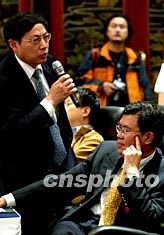 有“地產(chǎn)英雄”、“地產(chǎn)界金融家”之稱的任志強(qiáng)(站)、劉曉光(坐)等地產(chǎn)精英,十八日在北京通用“雙雄”峰會上第一次就“地產(chǎn)與汽車兩大產(chǎn)業(yè)并軌發(fā)展”舉行探討。作者:鄭萍萍