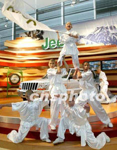 四月在上海舉行的第十屆國際汽車展覽會上,“少林寺小和尚”閃亮登場,為北京JEEP新車造勢。作者:趙振清