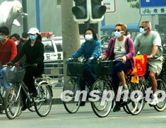 四月底的北京城正是全民抗御“沙斯”病毒的關(guān)鍵時(shí)期,一對(duì)外國(guó)夫婦和民眾一樣戴著口罩騎自行車(chē)上街,大家同舟共濟(jì),共渡難關(guān)。作者:賈國(guó)榮