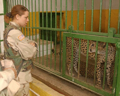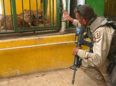 曾經(jīng)屬于烏代私人所有的七只獅子,兩只印度豹和兩條狗在美軍進入巴格達后,被放入伊拉克公園飼養(yǎng)。
