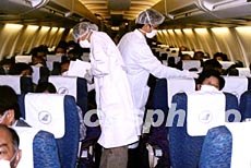 廣州四月底加強口岸防治“非典”力度,白云機場向入境旅客發(fā)放“入境健康申明卡”。作者:白云