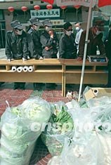 四月下旬的北京蔬菜市場受預防“非典”影響,價格曾一度上漲。政府采取調集限價供應等有效措施,使市場蔬菜價格現已全面回落。作者:張勤