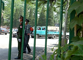 圖:軍警守衛(wèi)醫(yī)院重地 物資源源運(yùn)到