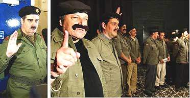 倫敦時(shí)間上午11點(diǎn)(北京時(shí)間19點(diǎn)),倫敦西區(qū)哈默史密斯“河畔攝影場(chǎng)”門(mén)外14名演員排起了長(zhǎng)隊(duì),其中《衛(wèi)報(bào)》的工作人員斯蒂芬·莫斯也在隊(duì)伍中,他們是來(lái)面試的,看起來(lái)他們都長(zhǎng)得有幾分像薩達(dá)姆,頭上戴著黑色貝雷帽,卡其布的軍裝夾克,而且都有黑色的假胡子,最令人驚奇的是居然有一位女士也來(lái)競(jìng)爭(zhēng)扮演薩達(dá)姆的機(jī)會(huì),她化妝后也與薩達(dá)姆有點(diǎn)像。