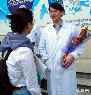 小詹家住7C,他在寧波一家公司駐杭辦事處工作。上午9點,辦事處的領(lǐng)導(dǎo)手持鮮花,趕到"在水一方"迎接小詹。簡單的迎接儀式后,小詹匆匆地走出了大樓,他對記者說:"工作要緊,我要馬上回單位上班去。"