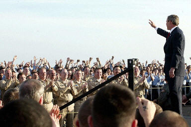 布什到航母上去,是為了發(fā)表演講:告訴全世界,對(duì)伊戰(zhàn)爭(zhēng),聯(lián)軍得勝了。