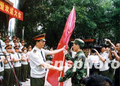 五日上午,中國人民解放軍第一軍醫(yī)大學(xué)六十二名醫(yī)護人員進京支援首都決戰(zhàn)“非典”,他們的抵達標(biāo)志著全軍為支援北京緊急抽調(diào)的一千二百名醫(yī)護人員全部到位。中新社記者:張永勝