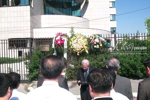 中新網(wǎng)5月7日電 人民網(wǎng)貝爾格萊德消息:中國駐塞爾維亞和黑山大使館全體工作人員、中國駐塞黑全體新聞工作者和旅南華人華僑代表今天上午在中國駐南大使館館舍廢墟前集會,沉痛哀悼在1999年美國轟炸中犧牲的3名中國烈士。