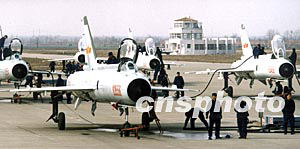 駐守黃海地區(qū)的海軍航空兵殲擊機(jī)部隊,在春季超低空攻擊與截?fù)粲?xùn)練中,戰(zhàn)機(jī)編隊快速加油提高戰(zhàn)斗力。汪漢宗 攝