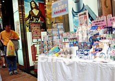 香港“非典”疫情穩(wěn)中放緩,市民不敢松懈,售賣預防病毒傳染的用品繼續(xù)受落。洪少葵 攝