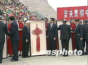 解放軍武警部隊(duì)代表、北京衛(wèi)戍區(qū)政委孫本勝少將、全國(guó)各省市代表、大學(xué)生代表、首都醫(yī)務(wù)人員代表、外地民工代表先后發(fā)了言。最后,北京市領(lǐng)導(dǎo)代表首都人民向解放軍武警部隊(duì)、中央部委、各省區(qū)市、各民主黨派代表和港澳臺(tái)同胞,海外華僑同胞贈(zèng)送了同心結(jié)。