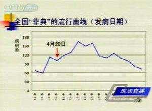 衛(wèi)生部疫情分析專家徐德忠:我們看一下今天的疫情,今天全國新增的診斷病例是80個,但是比高峰日要下降60%。我今天分析兩個問題:第一個問題是全國非典流行的疫情在我們采取措施以后呈波動地下降,證明措施是有效的;第二我們要警惕疫情向農(nóng)村擴散。