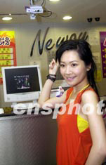 歌星關(guān)心妍5月14日出席在香港尖東Neway卡拉OK舉行新歌祝捷會(huì)。熱情的歌迷除送上鮮花外,更別出心栽送上皇冠頭飾。中新社傳真 鄧慶樂 攝