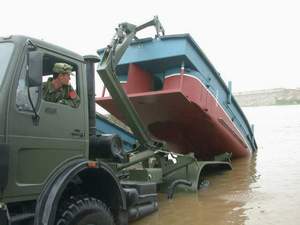 中新網(wǎng)5月16日電 據(jù)湖南《東方新報(bào)》報(bào)道,在瀏陽河訓(xùn)練碼頭的空地上,隨著軍官一聲令下,不到半個(gè)小時(shí),200余名官兵就豎起了面積近30平方米的軍用帳篷、可照射直徑達(dá)60米范圍的多功能照明燈、一條近20米長(zhǎng)、1米高的防洪子堤。昨日上午,駐湘某舟橋團(tuán)出動(dòng)20余臺(tái)舟橋車輛,首次利用新式器材進(jìn)行防洪大演練。