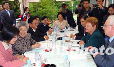 中國國務(wù)院副總理兼衛(wèi)生部長吳儀十八日在日內(nèi)瓦會(huì)見世界衛(wèi)生組織總干事布倫特蘭。作者:蔚中