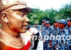 圖:雷鋒紀念館向西沙守島官兵贈送雷鋒雕塑