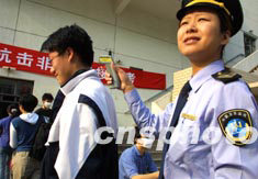 在SARS陰霾尚未完全散去的復(fù)課首日,北京各學(xué)校大多作足了“戒炎”功夫。記者今晨在北京八中看到,一大塊綠色消毒毯已在校園門口鋪展開(kāi),四臺(tái)紅外線體溫測(cè)試儀亦“嚴(yán)陣以待”。