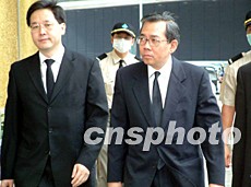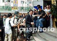 為救治非典型肺炎病人而殉職的香港女醫(yī)生謝婉雯5月22日舉殯,特首董建華在醫(yī)院管理局主席梁智鴻陪同下到場(chǎng)悼念。洪少葵 攝
