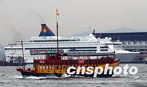 世界衛(wèi)生組織5月23日起解除對(duì)香港和廣東省維持個(gè)多月的旅游警告,稱兩地已有效控制SARS疫情。消息無(wú)疑是香港重振經(jīng)濟(jì)的強(qiáng)心針。圖為穿梭在維多利亞港灣的海上郵輪和仿古游船將迎接游客重臨香江。洪少葵 攝