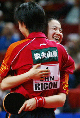這是自1989年鄧亞萍/喬紅折冠以來,中國選手連續(xù)第八次捧得波普杯。這塊金牌也是王楠在本屆比賽上所獲得的第三塊金牌,也是她連續(xù)第三次榮獲世乒賽女雙冠軍,從而實(shí)現(xiàn)她在世乒賽上的大滿貫。