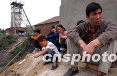 5月27日,礦工家屬在井口愁眉不展的等待救援人員返回地面。河南安陽安利煤礦5月24日發(fā)生老空透水事故,當(dāng)班井下42名礦工只有27人脫險,15人被困井下。專家推測仍有生還可能,目前已有200余名救援人員先后下井搜尋。作者:慎重