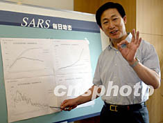 截止五月二十九日,北京的非典型肺炎臨床診斷病例為二千五百一十七例,其中醫(yī)務(wù)人員為三百九十八例,位居全國之首。韓德民指著北京地區(qū)SARS疫情事態(tài)圖說,北京的醫(yī)務(wù)人員感染總數(shù)中的百分之九十是在四月中旬到五月五日期間感染的,原因很明顯,救死扶傷的醫(yī)護(hù)人員倉促上陣且缺乏必要培訓(xùn),防護(hù)措施裝備不足,特別是對(duì)SARS傳染的嚴(yán)重性認(rèn)識(shí)不足。說話間,韓德民提到了今天上午北京人民醫(yī)院為殉職犧牲的護(hù)士王晶舉行追悼會(huì),他眼中閃爍著淚花說,作為醫(yī)務(wù)系統(tǒng)的指揮者必須像指揮戰(zhàn)爭的將軍愛護(hù)士兵一樣保護(hù)一線的醫(yī)生護(hù)士。