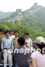 一些外地游客五月三十一日在北京八達(dá)嶺長城上合影,留下美好瞬間。因北京非典疫情而冷清多日的一些著名景點隨著疫情的回落,開始顯現(xiàn)旅游熱升溫跡象。中新社記者:毛建軍