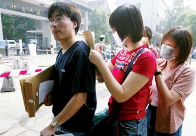 據(jù)北京娛樂信報報道,記者昨天在北大南門看到,這里戒備森嚴,保衛(wèi)部負責維持南門外秩序,查驗學生證以及《返校通知》、《返校健康登記表》等證件,學生家長親友一律被阻止在校門外。返
