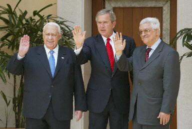 布什將在亞喀巴與以色列總理沙龍和巴勒斯坦自治政府總理阿巴斯舉行三方首腦會(huì)晤,說服巴以雙方立即承諾實(shí)施國際社會(huì)提出的中東和平“路線圖”方案。