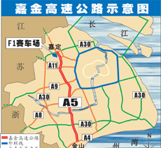 上海嘉金高速公路發(fā)展有限公司董事長張榮坤表示,為配合國際汽車城F1賽車場的建設,工程指揮部將采取進一步的技術(shù)措施和加快建設速度,一期工程(嘉定至北青公路)將提前于明年九月建成通車,以確保F1國際賽車大賽順利進行;整個工程將于二00五年底全線建成通車。