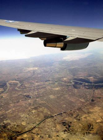 中新網(wǎng)6月6日電 美國(guó)總統(tǒng)布什月5日在搭乘專機(jī)“空軍一號(hào)”從卡塔爾返回華盛頓的途中,飛越伊拉克首都巴格達(dá)上空。