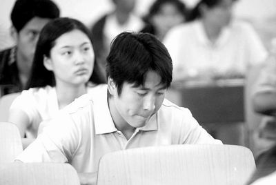 8點(diǎn)50分,考官開始宣講考場(chǎng)紀(jì)律,顯然考生中有祁宏的熟人,他邊點(diǎn)頭打招呼,邊笑嘻嘻地把書包放到較遠(yuǎn)的座椅上。其他考生也先后收好復(fù)習(xí)卷、參考書,迅速安靜了下來?荚噧尚r(shí)后結(jié)束,答完考卷的考生們議論紛紛地走出了考場(chǎng)。