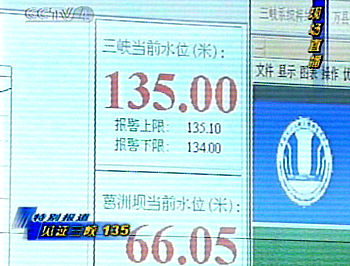 六月十日二十二時(shí)整,在三峽樞紐梯級(jí)調(diào)度中心,三峽工程開發(fā)總公司總經(jīng)理陸佑楣,通過現(xiàn)場(chǎng)近百家中國(guó)新聞媒體向全世界公布:三峽工程初期蓄水成功。