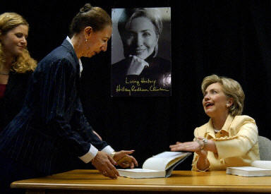 克林頓的風(fēng)流韻事無疑給希拉里的回憶錄增添了“可讀性”,但對希拉里未來政治前途的關(guān)注也增加了讀者的興趣。雖然希拉里已經(jīng)表示無意問津明年的總統(tǒng)競選,但人們認(rèn)為這并不代表希拉里不會參加二00八年的總統(tǒng)競選。紐約圖書館的退休職員魯思就相信希拉里很可能成為美國第一位女總統(tǒng);五十六歲的安妮更有些買“彩票”的心理,她認(rèn)為等到孫子十歲時希拉里可能就是美國總統(tǒng)了,到時她要把這本有“總統(tǒng)”簽名的書作為孫子的生日禮物。與此同時,美國廣播公司的一項民意調(diào)查顯示,百分之五十三的美國人不希望以前的第一夫人成為美國總統(tǒng)。希拉里作為第一夫人在白宮度過了從一九九三年到二00一年的八年時光。
