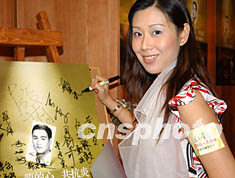 曾獲香港國際親善小姐稱號(hào)的殷莉,六月十四日出席在香港舉行的「龍的心、共抗炎,李小龍慈善珍藏電話卡公開發(fā)行」活動(dòng)。錢興強(qiáng) 攝