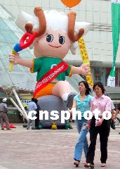 2003年9月,第六屆全國(guó)殘疾人運(yùn)動(dòng)會(huì)將在江蘇南京舉行,近日,殘疾人運(yùn)動(dòng)會(huì)的吉祥物“羊羊”出現(xiàn)在南京街頭。又又 攝